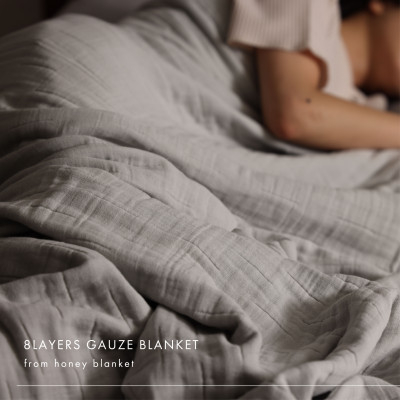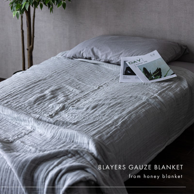 8重に織ったガーゼがたっぷりと空気を含んでおり、余分な湿気を逃がしつつ体温を一定に保ってくれます。