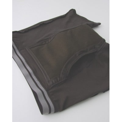 前開き仕様のフロント部分は大きなパットで前面の漏れをしっかりカバー。