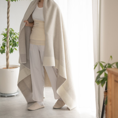 安心の日本製、安心の天然素材ウール100%(毛羽部分)を使用したおしゃれな毛布を作りました。
