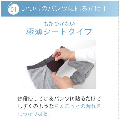 お手持ちのパンツに貼るだけで、手軽にお気に入りの下着を尿漏れ対策パンツにできます。
