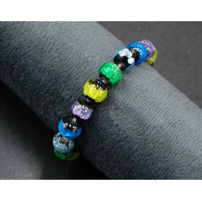 沖縄伝統工芸!琉球とんぼ石/ホタルガラス 10mm 数珠 ブレスレット ネオンカラー マルチ【1654028】