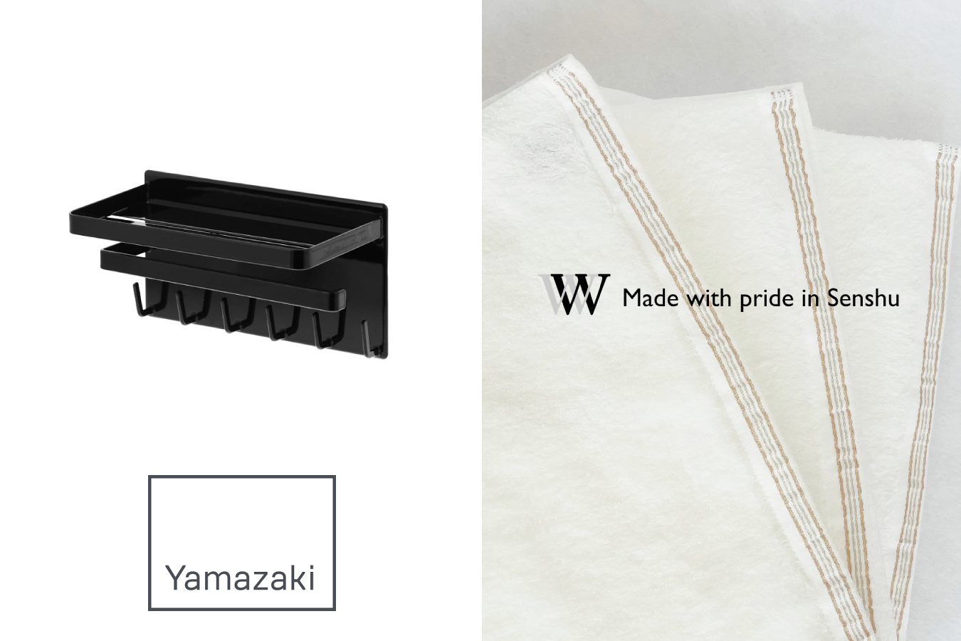 泉州タオル×山崎実業 W premier マグネットバスルーム多機能ラック ブラック セット F2 (009_5063)