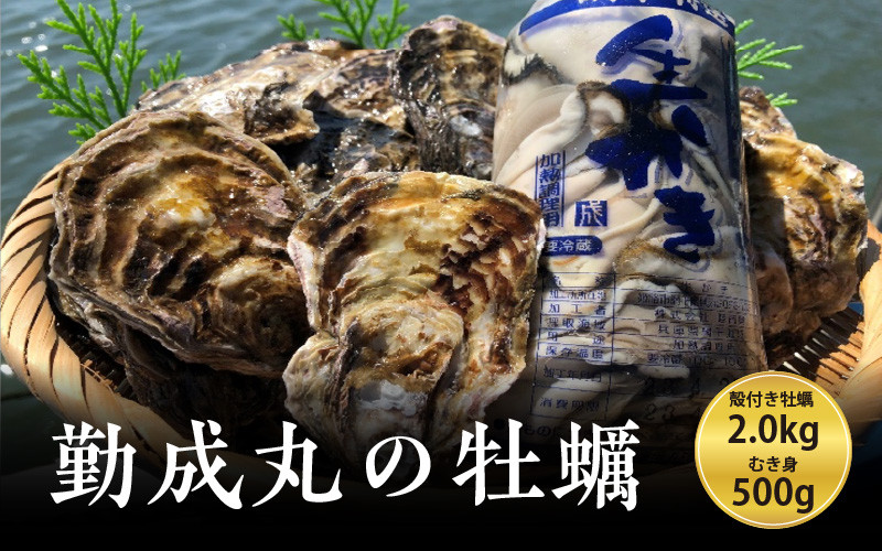 【先行予約】勤成丸の牡蠣 殻付き牡蠣 2.0kgとむき身500gのセット【2025年12月中旬以降順次発送予定】