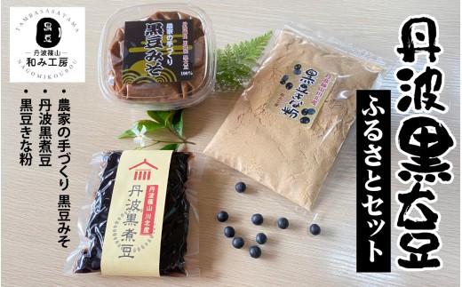 兵庫県で大切に育てた黒豆を贅沢に使用し、味噌・煮豆・きなこの3点を詰め合わせた「ふるさとセット」です。