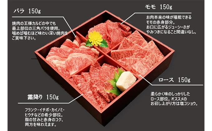 神戸ビーフ 焼肉4種セット バラ・モモ・霜降り・ロース 各150g 計600g