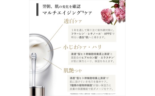 紫外線や年齢による肌ダメージを最小限に食い止め肌本来の透明感と弾力を与えます。