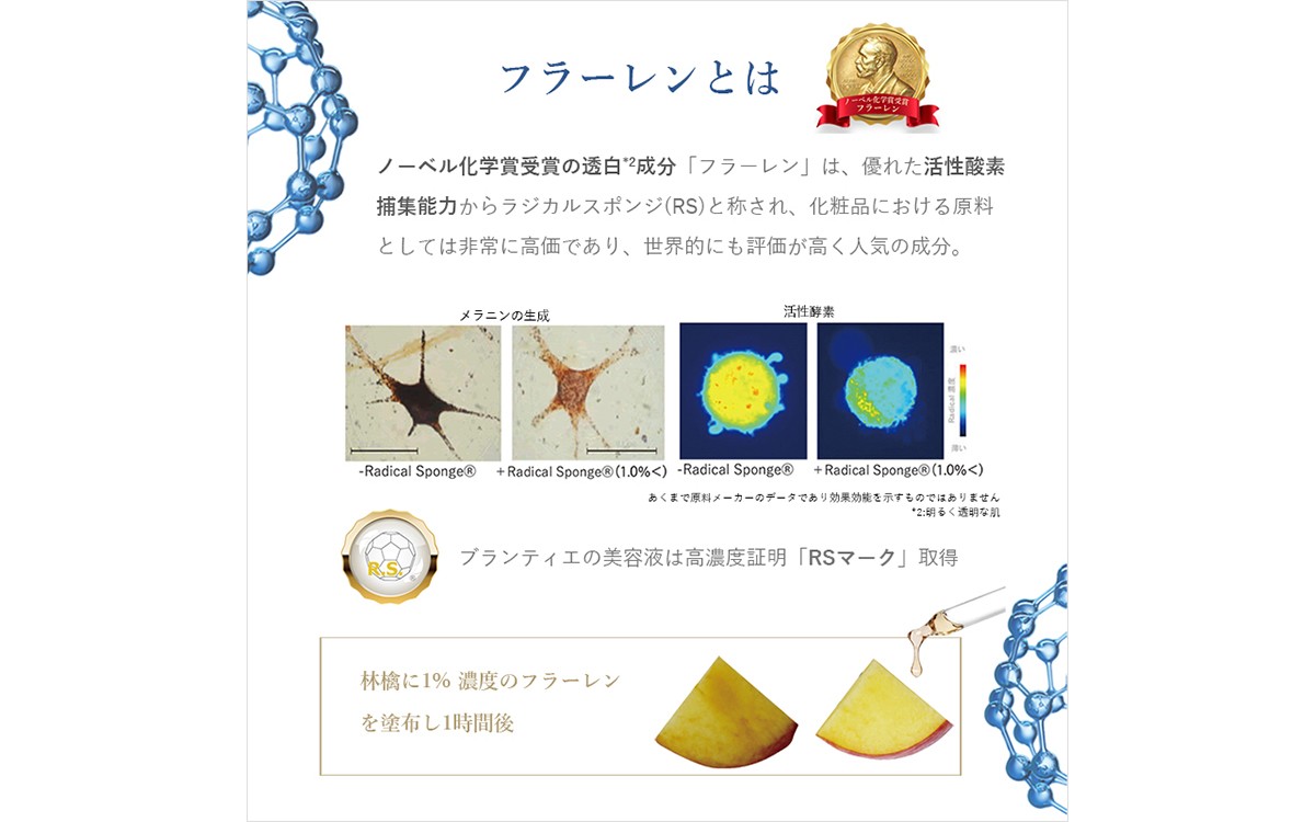 「ヒト幹細胞」の中でもリポソーム化された「浸透型ヒト脂肪細胞順化培養液エキス」が、みずからが導入するだけでなく、ノーベル化学賞受賞成分「RS水溶性フラーレン」や植物幹細胞など高配合している美容成分群をカプセルに閉じ込めて、肌の角質層までしっかり届けてくれます。