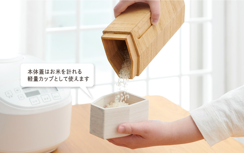 本体蓋はお米を計れる軽量カップとして使えるのもうれしいポイントです。