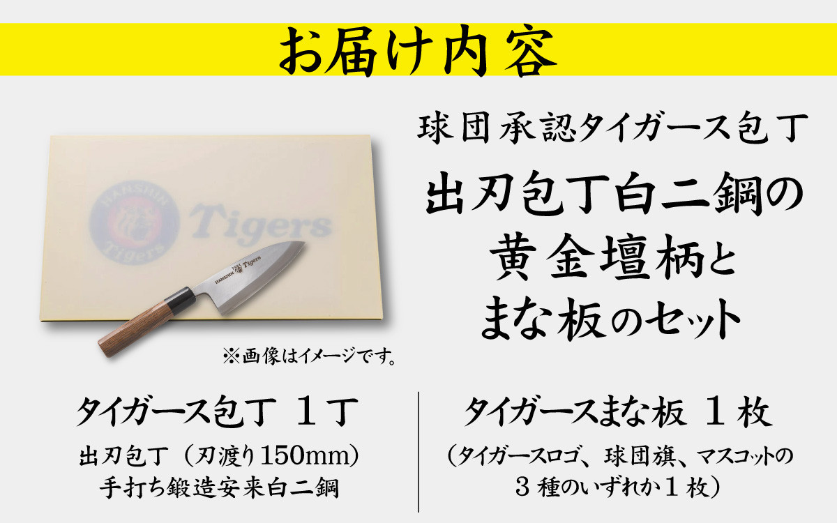 球団承認の包丁とまな板です。まな板は1種類選んでください。 球団承認タイガース包丁出刃包丁白二鋼の黄金壇柄とまな板のセット