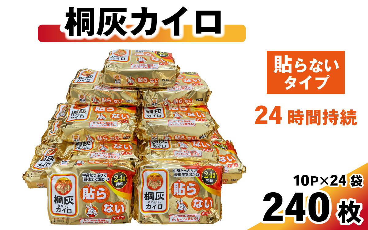 関西でおなじみ金色パッケージの【桐灰カイロ 貼らないタイプ】を一箱まとめてお届け 桐灰カイロ 貼らないタイプ 1箱 240枚 / 桐灰 カイロ 24時間 持続 はらない 使い捨て 防寒 日用品