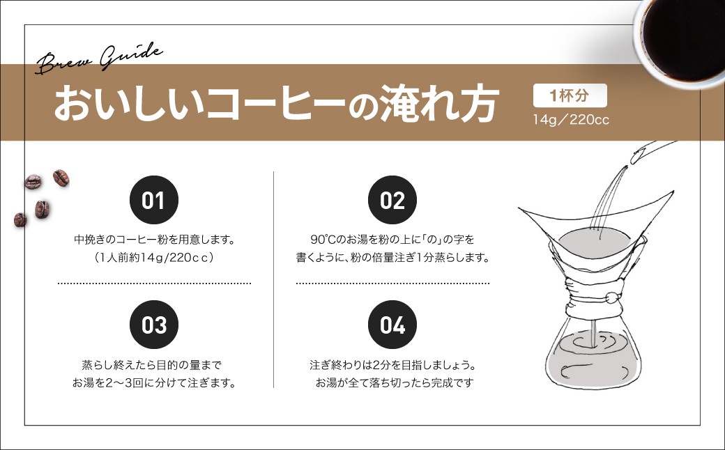 湯量はお好みで140~180ccを目安にしてください。