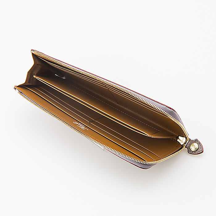 『made in JAPAN』にこだわり、鮮やかで透き通るような透明感のある染色で、艶感を足すことにより上品に仕上げた革製品です。スッキリとコンパクトに収納できるL字型で、カードポケットは10枚、オープンポケットが1つあります。コインポケットはファスナーをつけずオープンにすることで、取り出しがしやすいデザインにしています。
