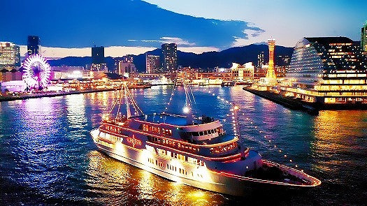 美しい神戸の景色、船内での最上の料理を楽しめます。