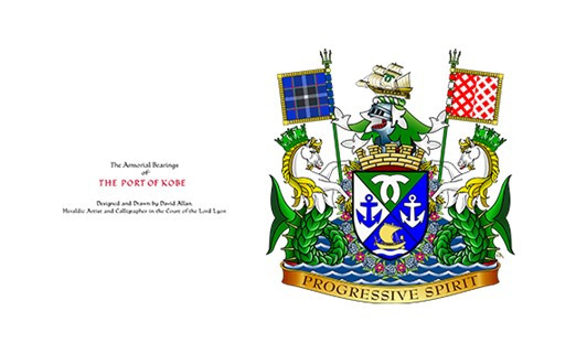 またこのネクタイには、神戸開港150年を機に制定された、紋章学に基づいた本格的な西洋紋章、「神戸港紋章」があしらわれています。