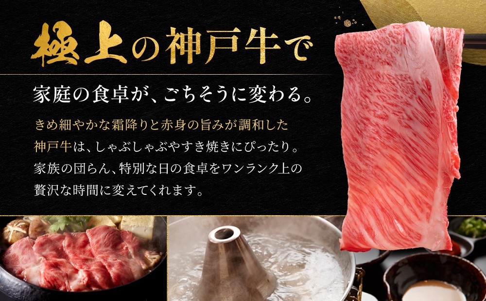 【神戸牛(神戸ビーフ)】 世界の舌を魅了し、味わうたびに、笑顔が広がる品と質。きめ細かく上品な甘みのある赤身が、脂肪の風味、香りと溶け合うハーモニー。 人肌で溶けるほど融点の低い「霜降り」とおいしさの決め手である「イノシン酸」や「オレイン酸」が豊富な神戸ビーフ。 兵庫県内の指定生産者のもとで生まれ育った子牛を兵庫県指定の食肉センターで枝肉格付等をクリアした、 選りすぐりのお肉が「世界の舌を魅了する神戸ビーフ」として皆様の食卓へとお届けします 但馬牛とは、明治36年の牛籍台帳以来、兵庫県内で厳正な個体管理や育種改良を進めてきた牛です。 そのうち一定の枝肉格付けのものが神戸ビーフと呼ばれます。 ※このお礼の品は兵庫県地域資源認定品です。神戸市産ではありません。 【有限会社 太田家】 関連キーワード:神戸牛 牛肉 肉 お肉 にく 食品 人気 おすすめ 送料無料 ギフト