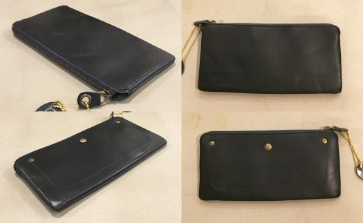 裏面は、内装コインポケットにあしらわれたステッチとカシメがポイントになっています。