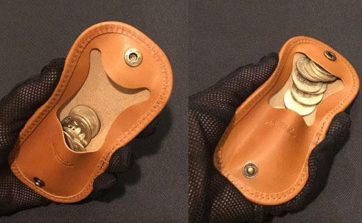 コインケースではめずらしいヘリ巻きをしました。