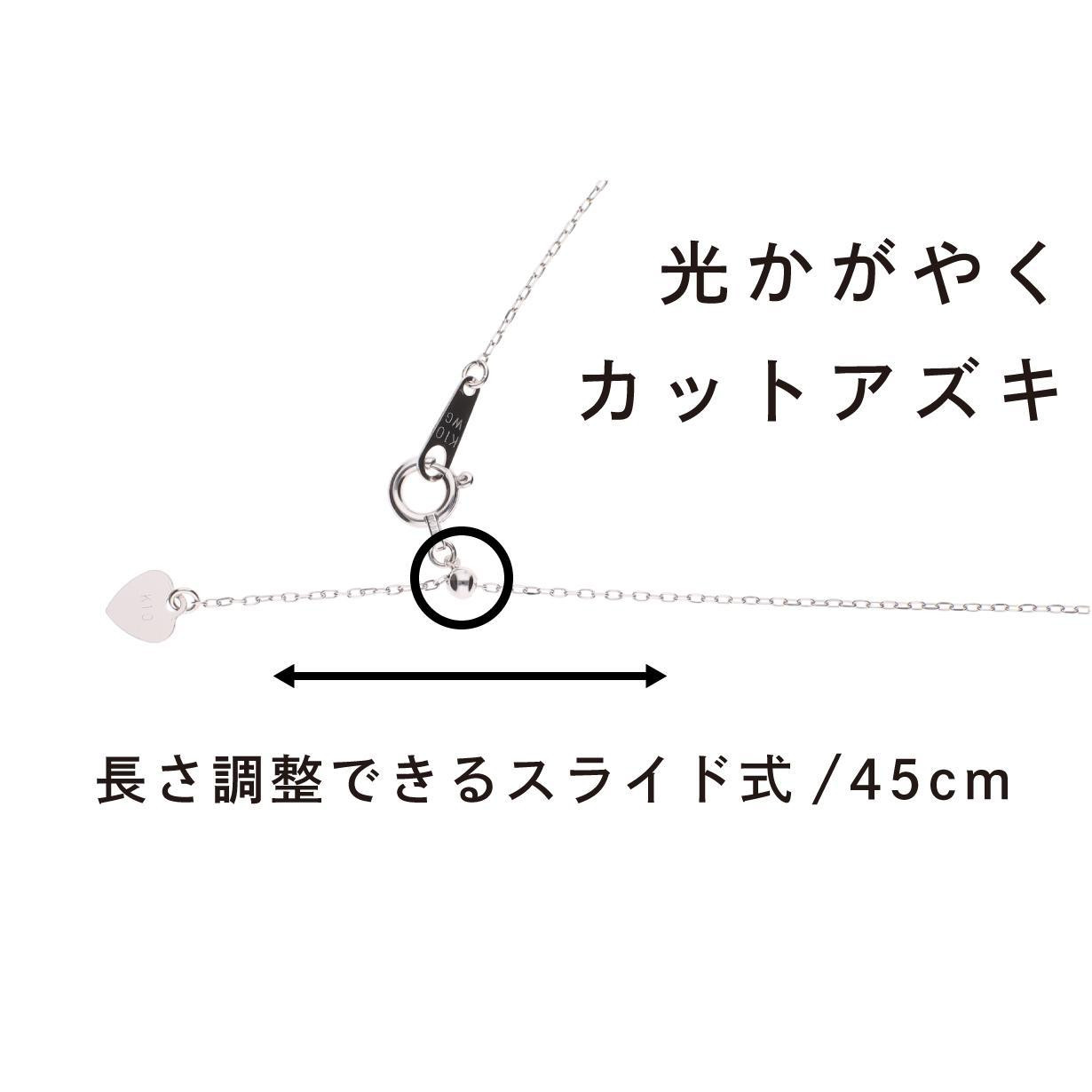 デザインはカットアズキで、素材はホワイトゴールド、キラキラときらめく美しい輝きが特徴です。チェーンの長さは45cmで長さ調整ができるため、お好みやシーズンの服装に合わせて自由に調節可能です。