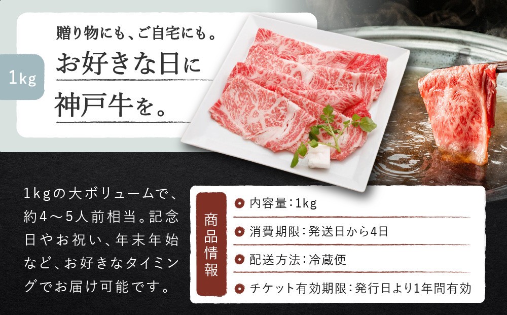あとから着日が選べる!神戸牛ロースすき焼き/しゃぶしゃぶ用 1kg