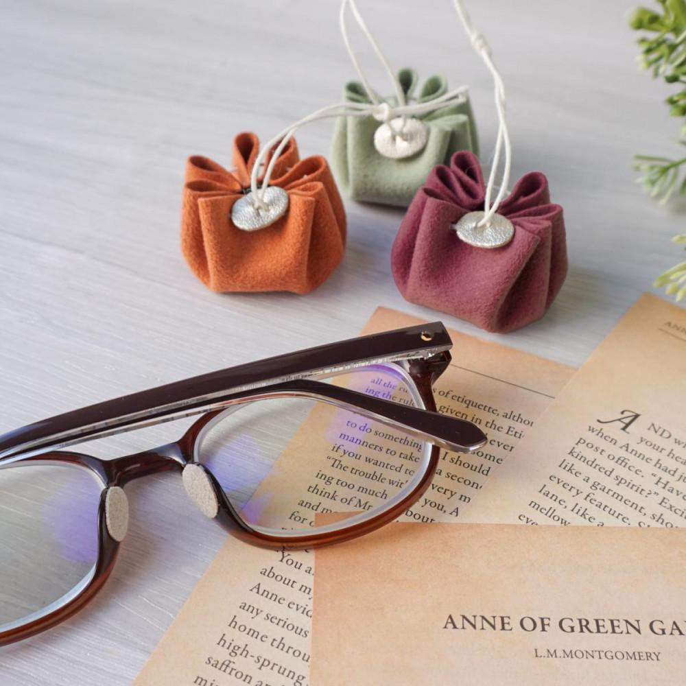 メガネケースに押し込んでも大丈夫な柔らか巾着つきです。
