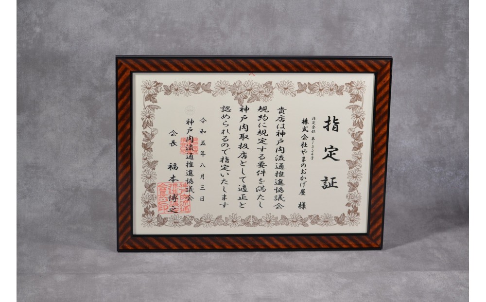 神戸肉流通推進協議会より認定も受け神戸牛の販売も行っています。