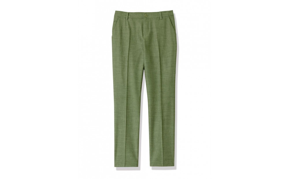 ヒップからワタリにかけてはゆとりを持たせ、裾に向かうにつれ細くなっていくテーパードシルエット。エレガントなスタイルからカジュアルな装いまでシーンを問わず、年齢や体型も気にせずに着まわせる万能パンツです。