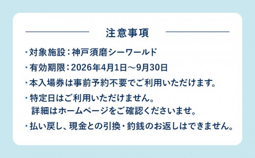 神戸須磨シーワールド入場券 2枚セット(有効期限:~2026年3…