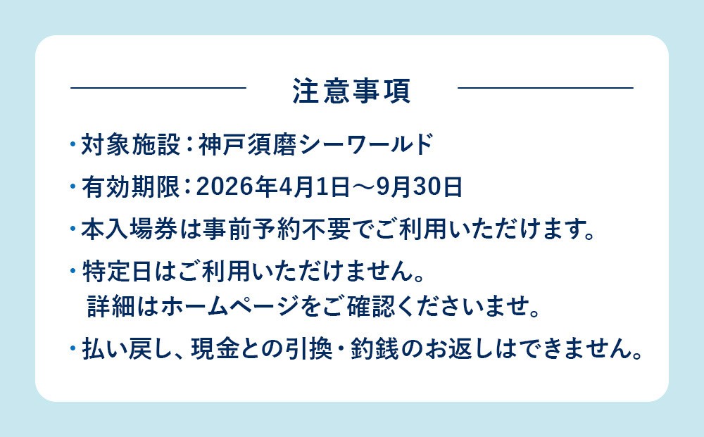 神戸須磨シーワールド3枚(有効期限:2026年4月1日~9月30日)