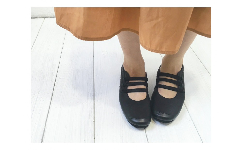 脱ぎ履きしやすいように、甲の部分がゴムタイプとなっています。中敷きやアウトソール(底)の交換もできて、長く愛用できる1足です。