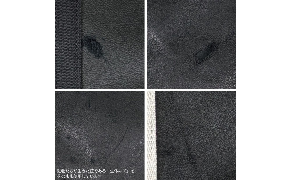 この製品には、動物たちが生きた証である「生体キズ」や「シワ」をそのまま使用しています。それらを私たちは「欠点」ではなく、自然が刻んだ唯一無二の個性と捉え、大切に活かしています。本来なら捨てられる革も、豊かな表情を味わいとして製品に取り入れました。同じものが二つとなく、使うほどに深まり、あなただけの表情へ育っていきます。この自然の恵みとサステナブルな視点に共感していただけたら幸いです。