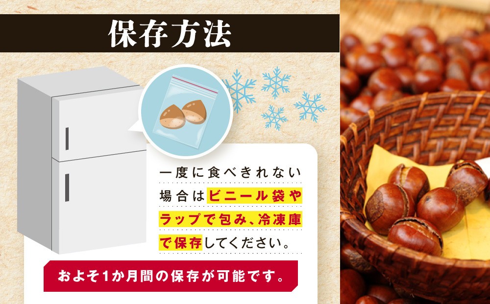 中国河北省青龍産の特選大粒栗のみを使用。食べ応え抜群!1粒は平均9g以上のもののみ厳選しました。