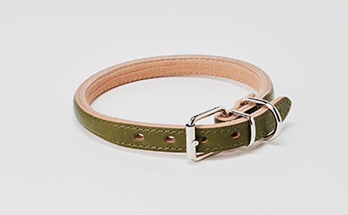 大切な家族に贈る、草木染牛革の野菜しい自然素材。 [№5258-7043]0097good collar 5号[犬 猫 首輪]オリーブ