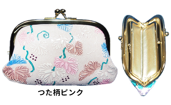 白く柔らかく仕上げて、すべて手描きで色づけした、姫路伝統の姫路革を使用した親子がま口です。