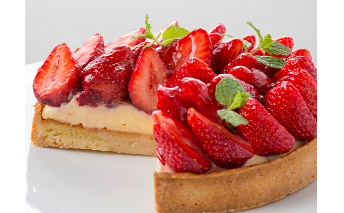 新鮮な苺たっぷりのタルト。甘酸っぱくジューシーな苺と自家製カスタードクリーム、誰もが大好きな組み合わせです。