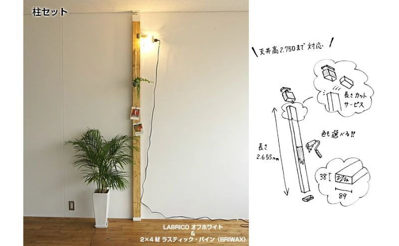 | 容量 | ・LABRICOアジャスター ブロンズ×1セット ・柱:38×89×2700 SPF材 1本 |