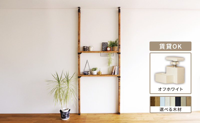 LABRICOアジャスターを使った2×4材(SPF・またはパイン集成材)の柱2本とLABRICO棚受けシングルを使った棚板のセット商品です。