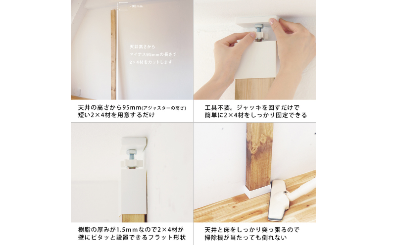 天井に突っ張るので賃貸でも壁を傷つけず壁面収納が出来ます。