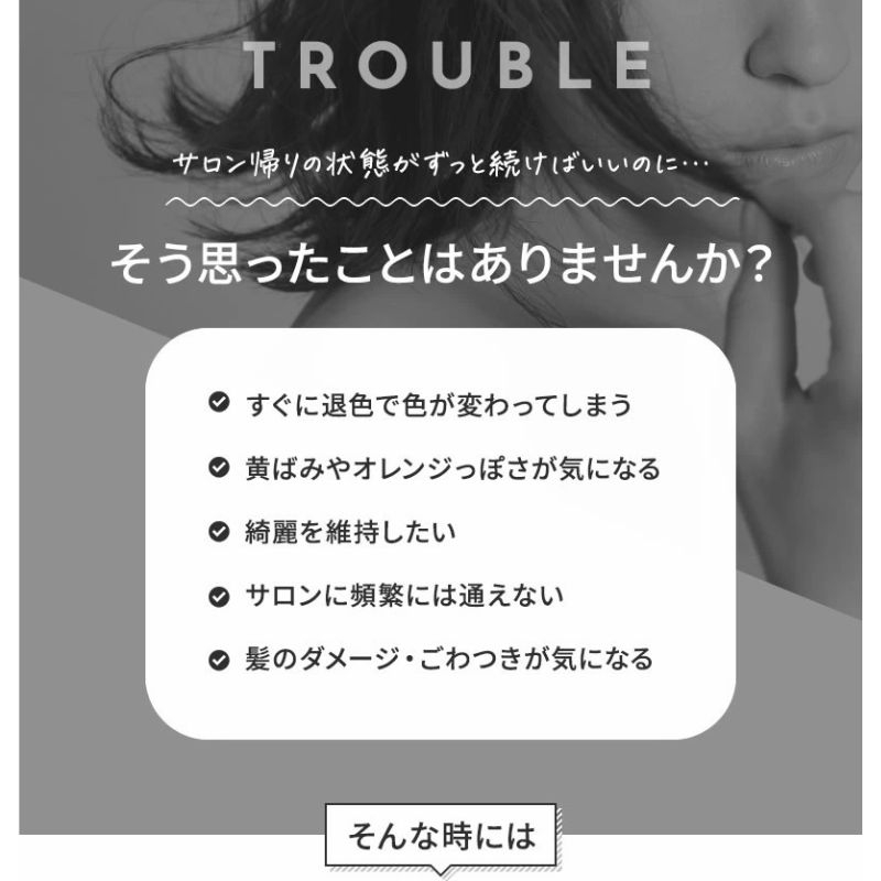●本品はカラーした髪に対してカラーの色もちをよくし、退色を抑えるための製品ですので、単品で髪色を明るくすることはできません。黒めの髪に使用しても色味は感じられません。