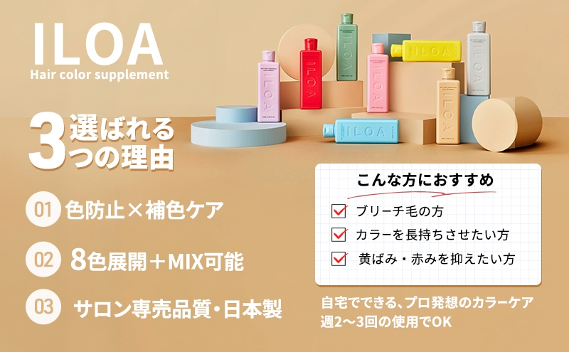 [№5258-1548]カラーシャンプー ILOA イロア ヘアカラー サプリメント 170ml 選べる色 カラーケア アッシュ ピンク パープル シルバー ベージュ レッド ブラウン オレンジ ブルー カラーキープ 退色 ムラシャン 赤 青 紫 推しカラー全8色