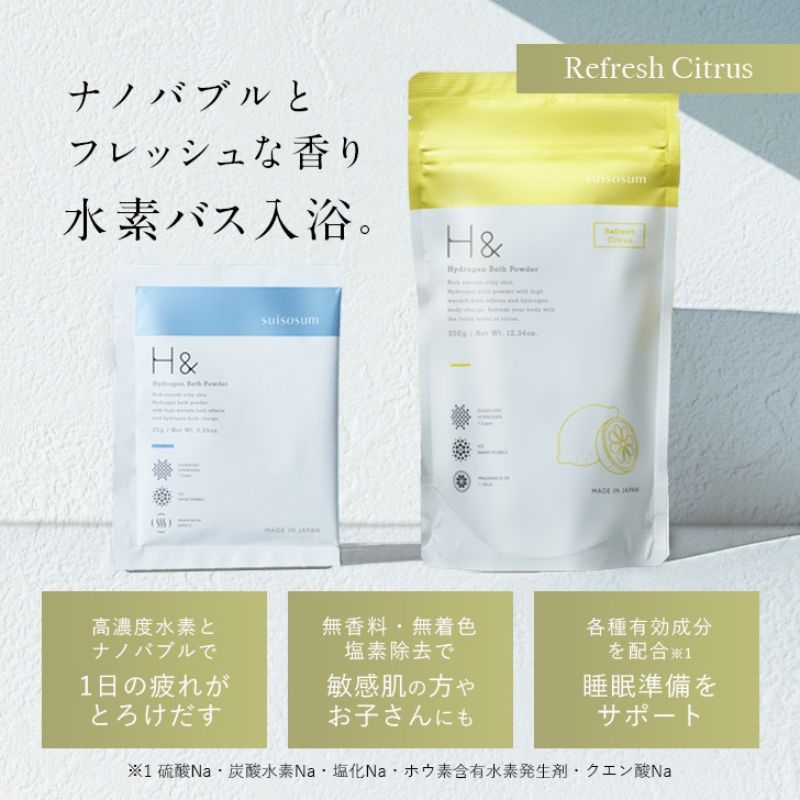[№5258-1619]入浴剤 水素入浴剤 シトラス 香り付 1個 10回分 無香料25g 5個 お試し セット H& アッシュアンド ナノバブル 女性 プレゼント ギフト 水素風呂 水素 半身浴 美肌 疲労回復 睡眠 快眠 炭酸 炭酸入浴剤