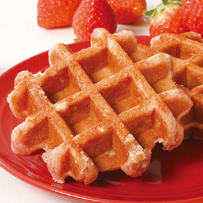 あまおう苺ジャムといちご顆粒入り。いちごの甘酸っぱい風味が広がるワッフルに仕上げました。