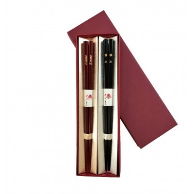 漆塗箸 純金名入れ夫婦箸 黒・溜塗セット【1422378】