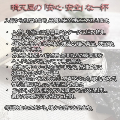 煎りたての状態でお届けします。豆の洗浄・選別・焙煎・保管まで徹底管理し、