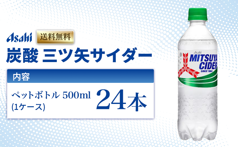 炭酸 三ツ矢サイダー 500ml × 24本 ( 1ケース ) ペットボトル 飲料 炭酸飲料 飲み物 ドリンク ジュース 三ツ矢 サイダー まとめ買い 箱 買い ケース ミツヤサイダー 送料無料 アサヒ飲料 兵庫 兵庫県 明石市