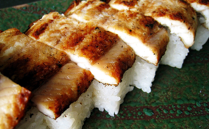 箱寿司が2本。ふわとろ食感の煮穴子、分厚い上焼き穴子。さらにさらに山椒が聴いている穴子佃煮の3点のセットです。