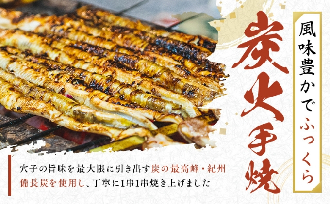 穴子の旨みがしみ込んだ秘伝のタレにつけ、紀州備長炭を使用し丁寧に1串1串焼き上げました。