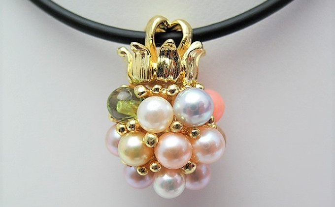 真珠と色石のコンビネーション!4通りの色合いが楽しめるペンダントです。 パイナップルパールペンダント(革風コードサービス)