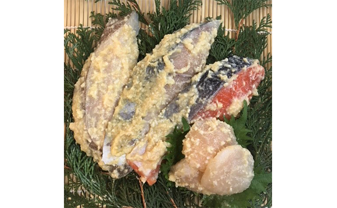 | 容量 | ・鰆の味噌漬×1切 ・ホタテ貝柱の味噌漬 ・カレイの味噌漬×1切 ・鮭の味噌漬×1切 |