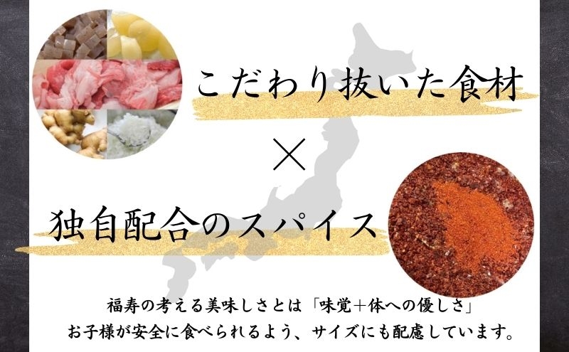 福寿の牛すじ煮込みは、作り始めて30年以上。ふるさと納税をはじめるために特別に調達したA5ランク国産和牛のすじ肉を、丁寧な仕込みと独自の製法でじっくり煮込み、旨みを余すことなく引き出しました。玉ねぎの水分だけで煮込むことで、自然な甘みと深いコクを実現。さらに群馬県産こんにゃくや南あわじ産玉ねぎなど、こだわりの国産素材を合わせています。