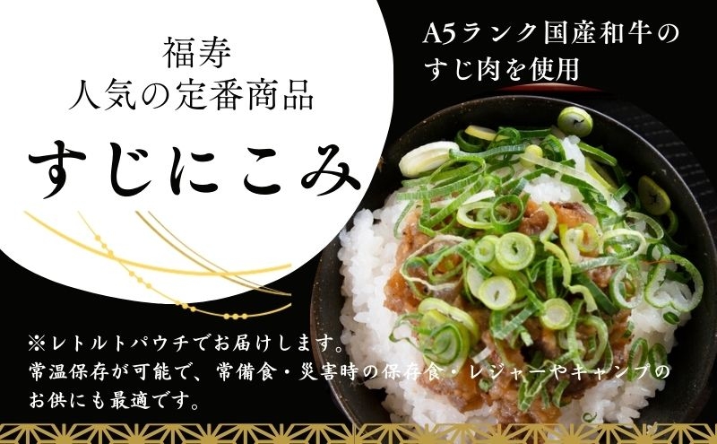 A5ランク国産和牛すじ煮込み450g(150g×3パック) 福寿 グルテンフリー 管理栄養士監修|明石市 人気 お取り寄せ 国産牛肉 高級レトルト 惣菜 ご飯のお供 おかず ご当地グルメ 常温 保存食 長期保存 兵庫